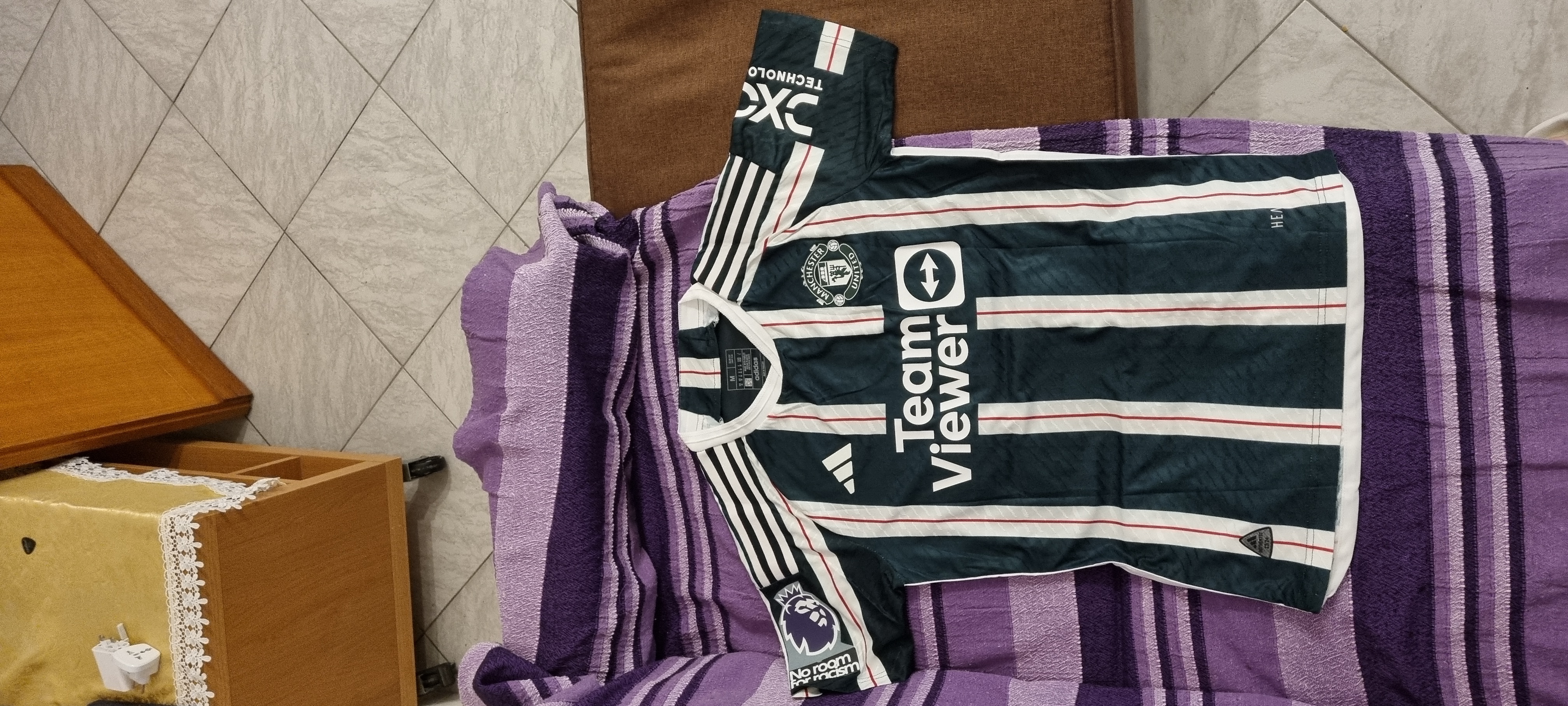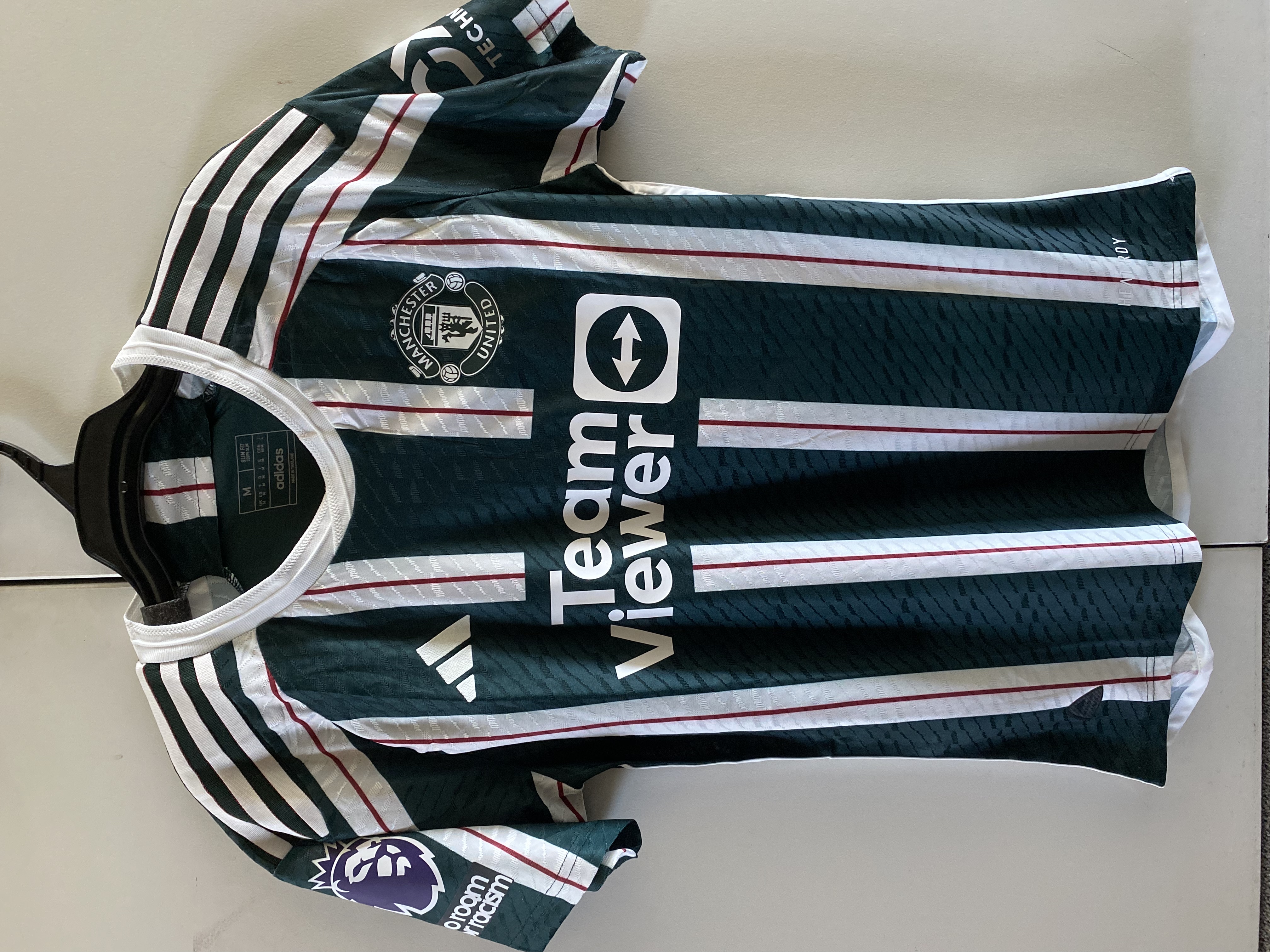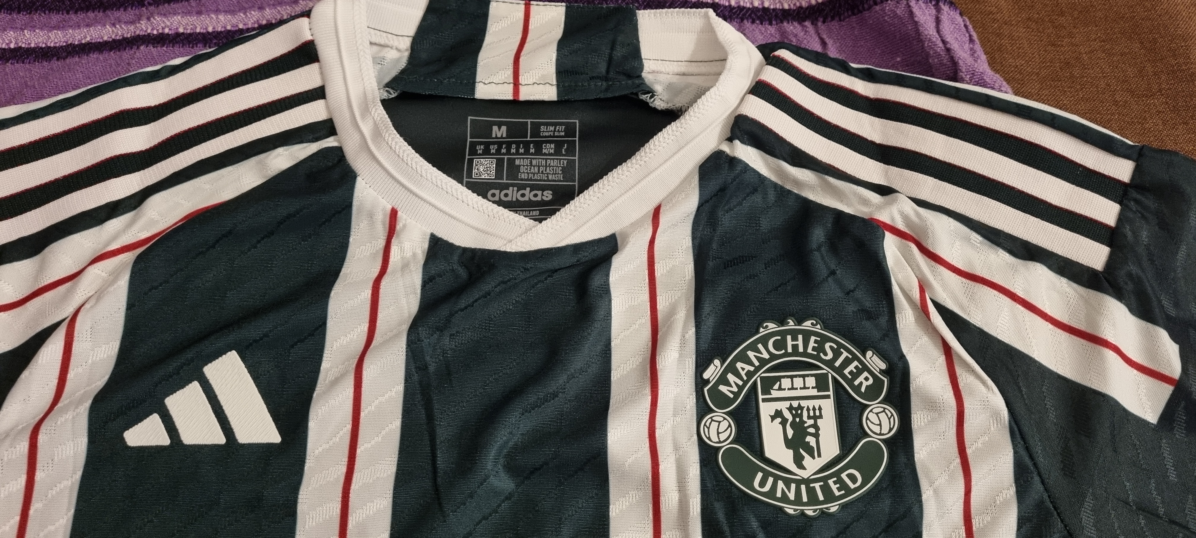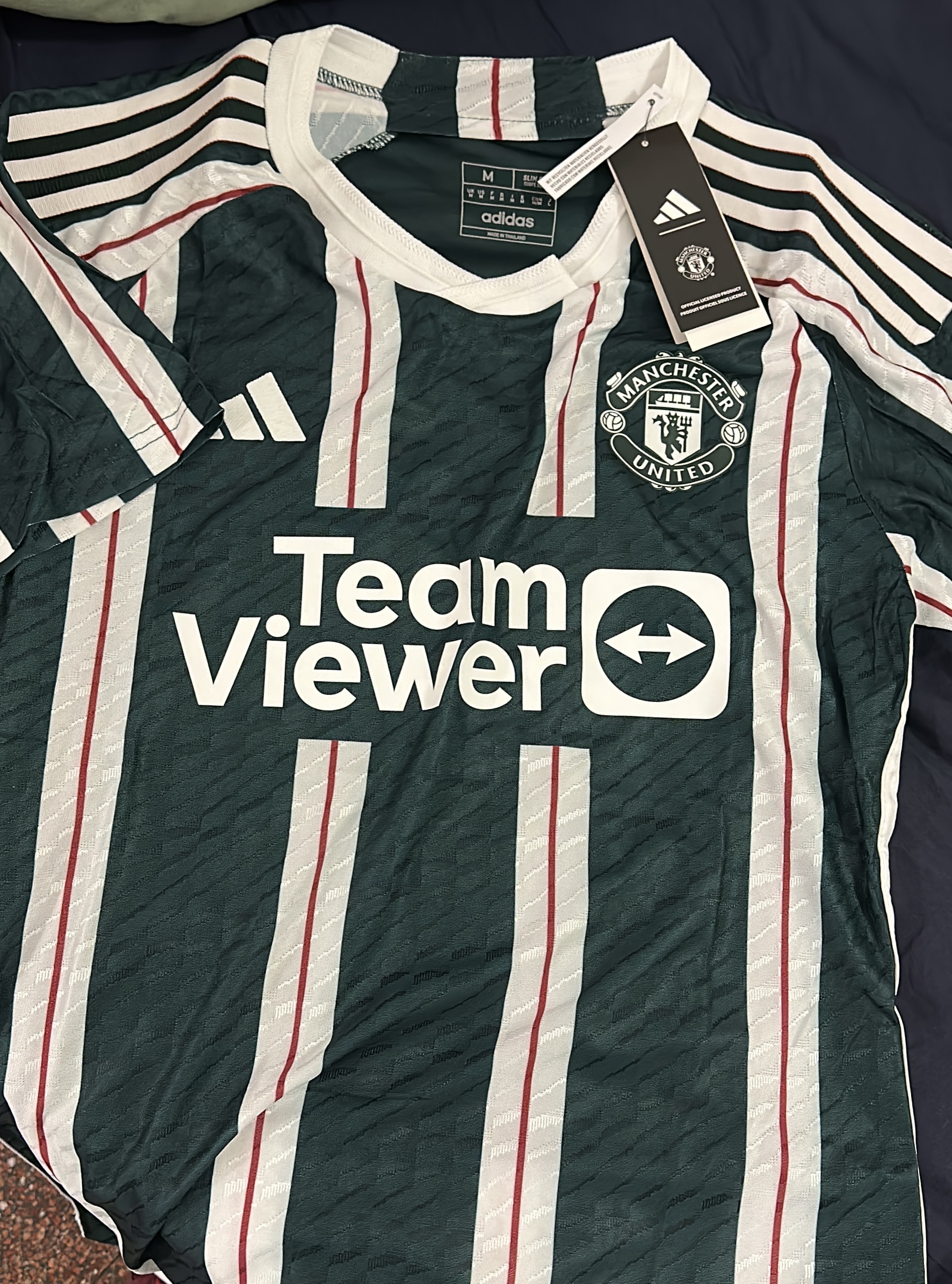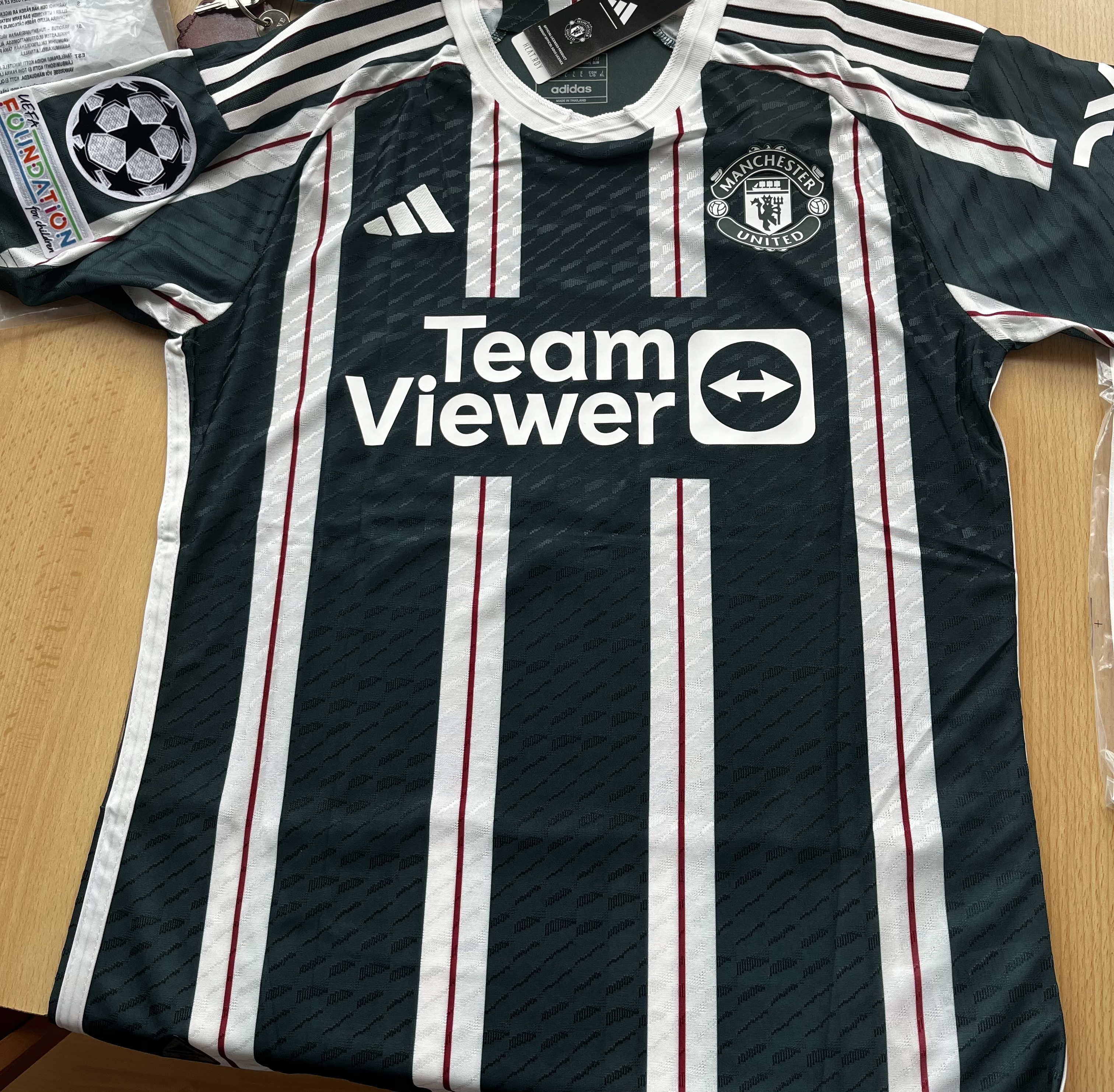 Jersey is really well made, arrived with all the right requests. There is no adidas x Man Utd label but id doesn't really matter. Arrived in 34 days in Italy.